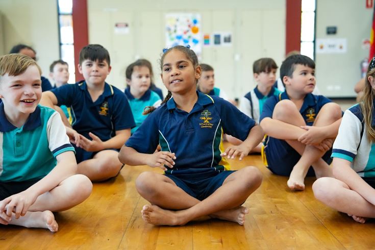 There were also many wonderful performances from Catholic Education Diocese of Parramatta students, including a beautiful rendition of the Belonging Song by students from St Bernadette’s Primary Lalor Park, Holy Famly Primary Emerton and St Columba’s Catholic College Springwood. A mesmerising Dragonfly Dance by students from St Canice’s Primary Katoomba, St Finbar’s Primary Glenbrook, Our Lady of the Nativity Primary Lawson and St Thomas Aquinas Primary Springwood was met with a standing ovation from delegates. Uncle Chris Tobin introduced the dance with wonderful traditional stories of how some of the natural wonders in the Blue Mountains came to be and the origin of the dragonfly, which the ‘sky spirit’ created from a rainbow cracked by strong winds. Uncle Chris said the story reminds us all that “God is still with us even when our world starts to crack and shatter”.