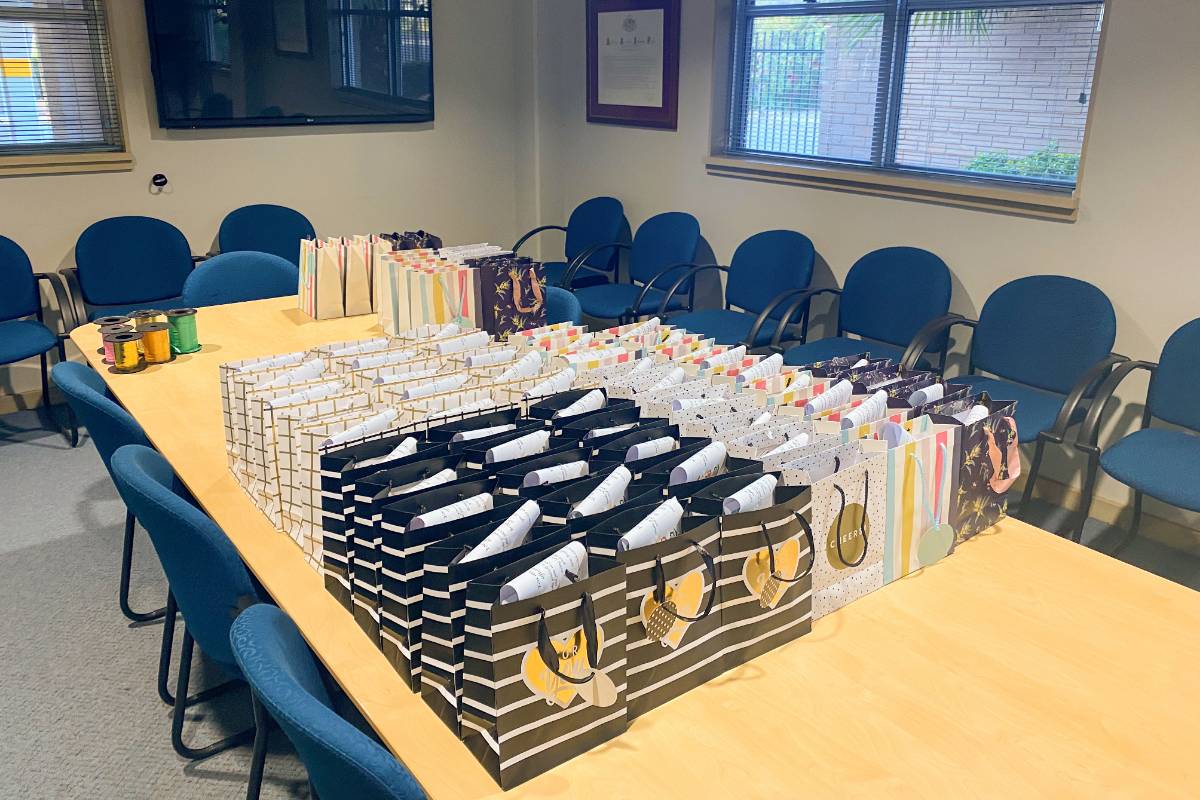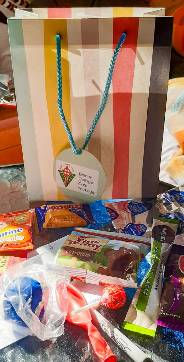 Delany staff rallied together to purchase goodies, organise the care packages and deliver them to students.
