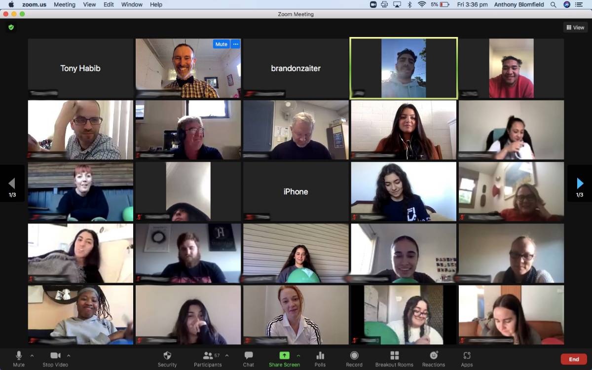 Students were encouraged to write a message of gratitude on the balloons provided and bring them along to display during the special zoom afternoon tea. Teachers and staff also shared stories and jokes.