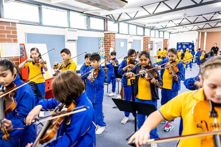 The Classroom String Program is a classroom-based foundation method in string playing. Schools invest in a class set of instruments in the first year with CAPTIVATE providing the tutors and teaching resources for the delivery of the program. The program is taught in class streams and ideally is begun in Year 3 however, it can start in either Year 3, 4 or 5 (not Year 6). Individual and small group lessons outside of the classroom program are also available on a modest user pays basis.