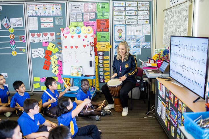 CAPTIVATE Specialist Teacher delivers classroom band program with the class teacher participating.