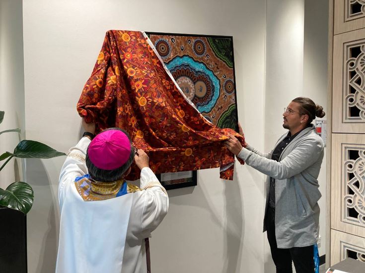 “This artwork highlights our commitment to the ongoing journey of Reconciliation,” Bishop Vincent said. “The names of these meeting rooms recall the spirit and culture of our Aboriginal and Torres Strait Islander sisters and brothers. They will be a sign that the Church is a reconciling community.”
