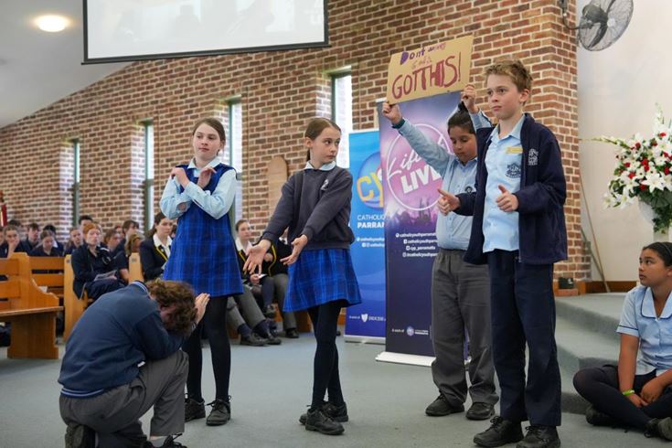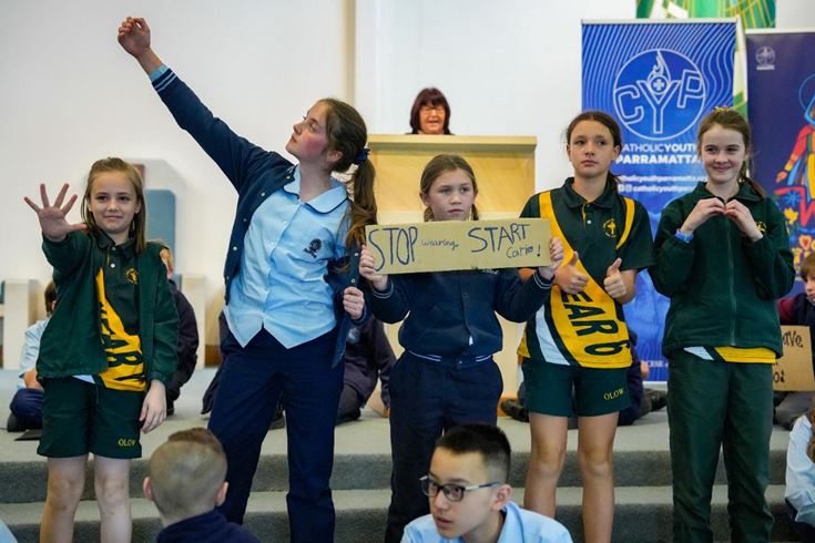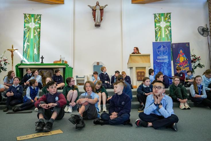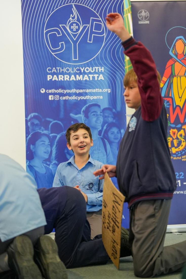 Opening with an energising performance by the St Columba’s band, there was an electric atmosphere with children, teenagers and adults alike standing up to sing and dance. There was an Acknowledgement of Country before students enjoyed icebreaker games before breaking into small groups where they introduced themselves and discussed Diocese of Parramatta’s Laudato Si Campaign, led by Bishop Vincent Long, which is a seven-year commitment to care more deeply for the environment and those in need.