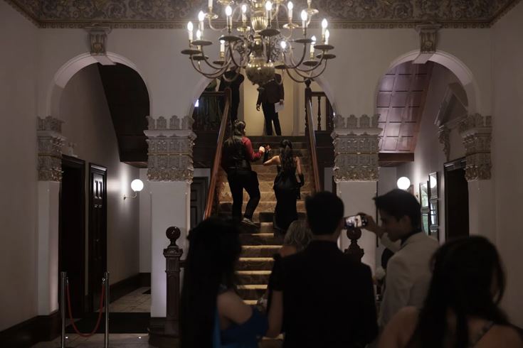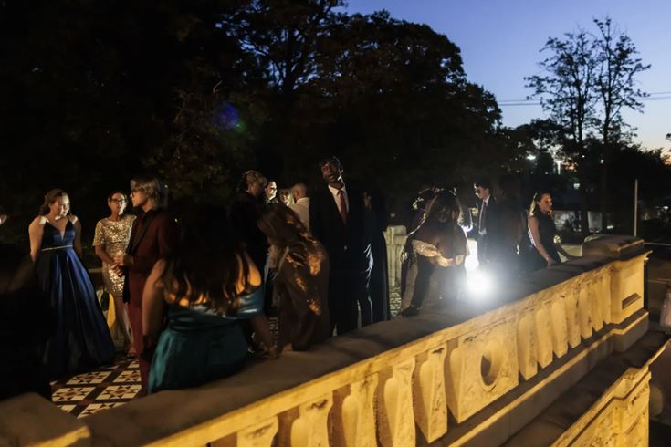 Attendees prepare to enter the formal at Curzon Hall. Credit: Brook Mitchell