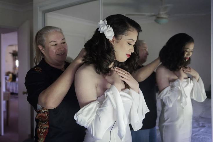 Kazvaana Piho, a year 12 student at St Clares High School, gets ready with mum Deb at home. Credit: Brook Mitchell