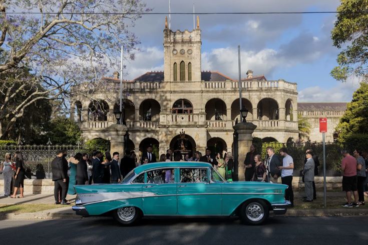 Students begin to arrive at Curzon Hall for the St. Clares School formal. Credit: Brook Mitchell.