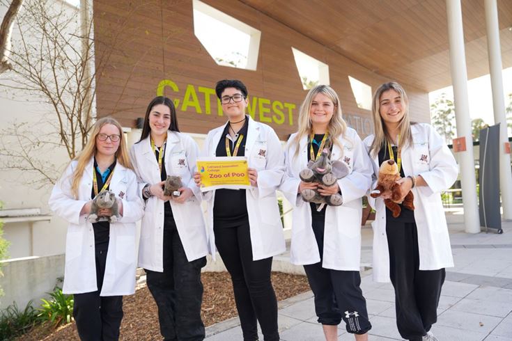 The CathWest Innovation College ‘Zoo of Poo’ team consisting of Year 10 and 11 students Mia R, Paige, Taylor, Olivia and Mia C partnered with Quantel Bioscience and Sydney Zoo to study and research the microbes in animals’ stomachs to help improve the nutrition of zoo animals. Their project won the award for Best STEM Idea (Secondary).