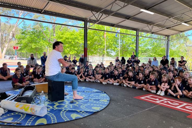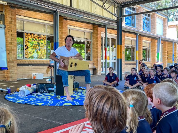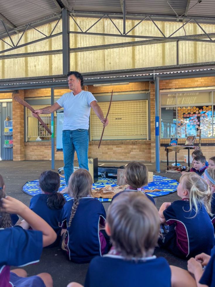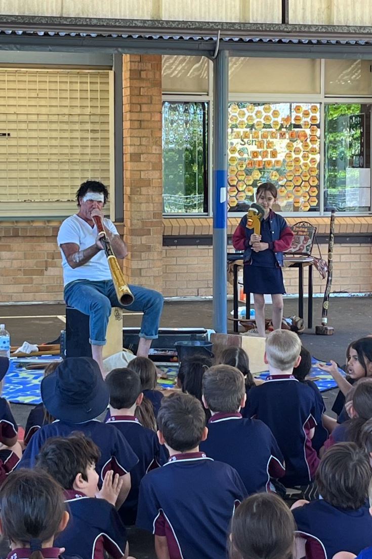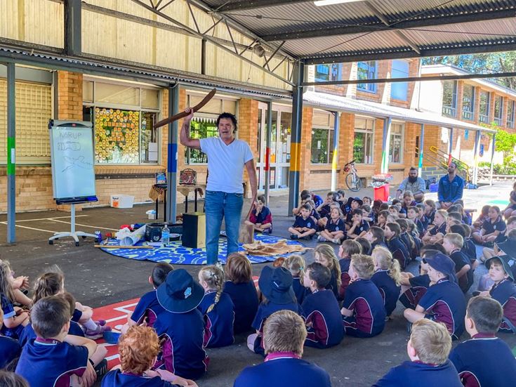For Blak Douglas, the visit was particularly special because he grew up in Penrith, exploring the National Park and lower Mountains. Bringing his 'Didge You Know?' performative workshop to St Finbar's felt like a homecoming of sorts, allowing him to share his culture and background with the school community.