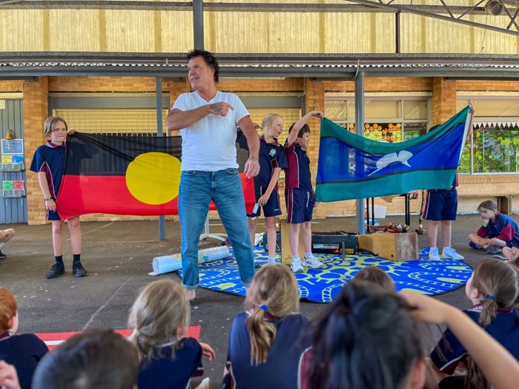 2022 Archibald Prize-winning artist Blak Douglas was deeply moved by the cultural connections and understanding exhibited by students from St Finbar’s Primary Glenbrook as he visited the school for a special Indigenous cultural presentation and to judge the school's Young Archie competition.