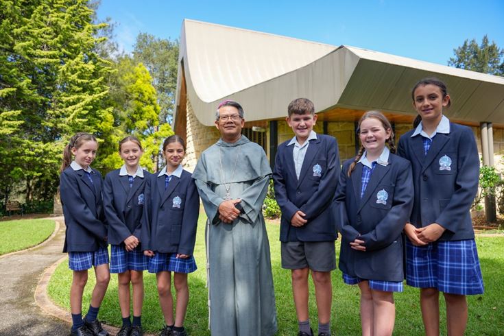 Bishop Vincent Long greeted students and teachers at the Project Compassion launch at St Finbar’s Primary Glenbrook.