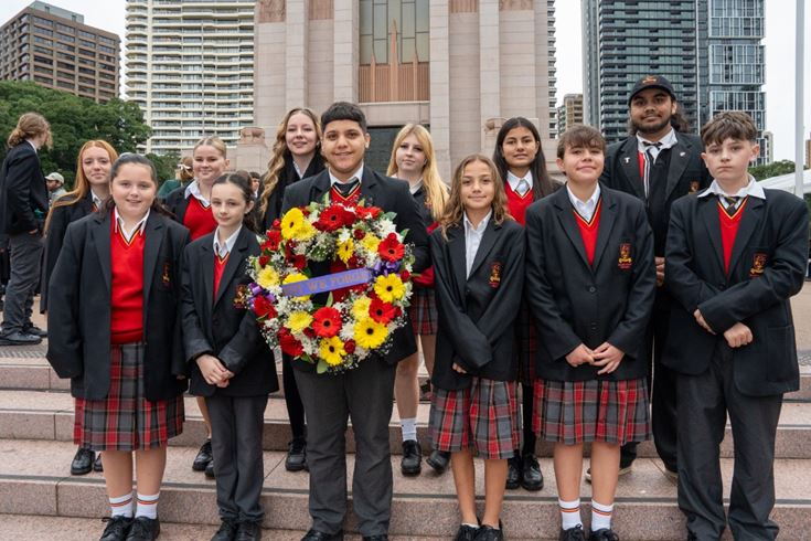 Catholic Schools Parramatta Diocese (CSPD) students, staff and members of the Jarara Cultural Centre gathered around Hyde Park’s Pool of Reflection for the 2024 Indigenous Veterans Commemoration Service at Hyde Park.